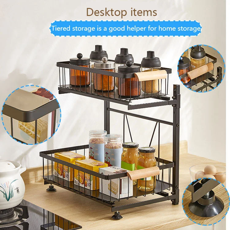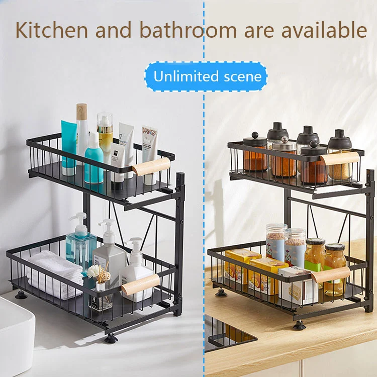 2. Accessoires toevoegen om de textuur te verbeteren: onze ontwerpers hebben houten handvatten als accessoires toegevoegd om het hele product interessanter te maken. Als je eraan trekt, voelt het prettig aan en er is extra voeringpapier aan de onderkant van de mand toegevoegd om te voorkomen dat kleine spullen wegglijden. Ook de hoogte van de basispoten kan aangepast worden. Bij gebruik in de badkamer hoeft u zich geen zorgen te maken dat de geplaatste voorwerpen in contact komen met het aanrechtwater.